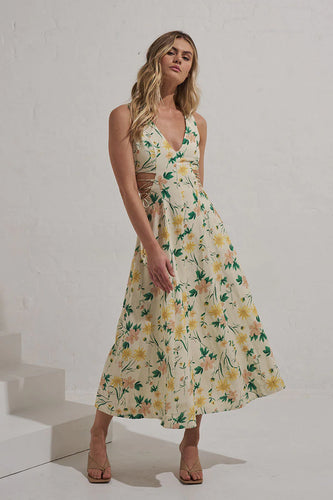 MON RENN-ETHERIAL FLORAL MIDI DRESS - GARDEN PARTY FLORAL