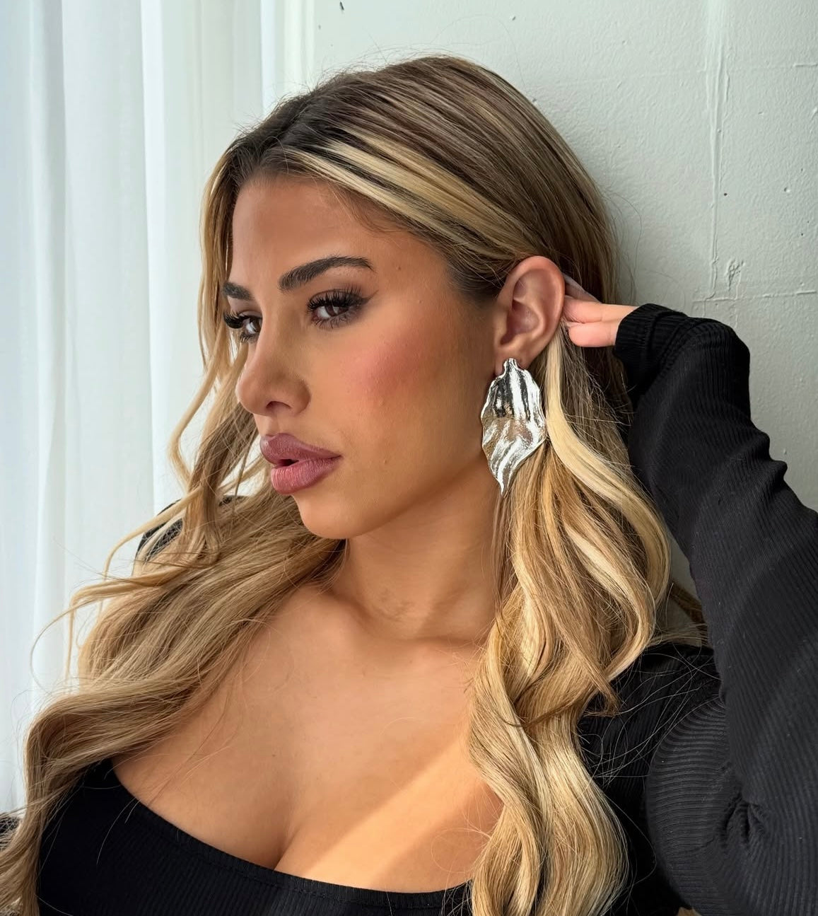 • Sculptural statement earring style – 7.5cm long, 3.7cm wide